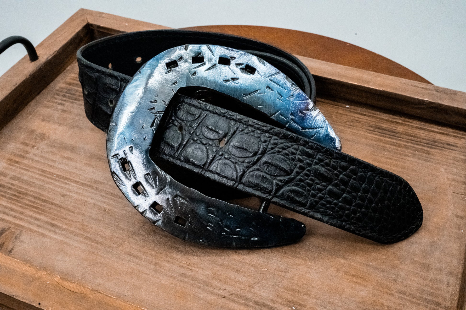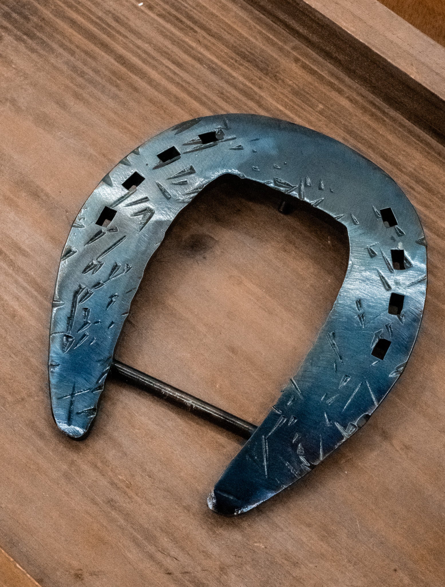 Our Square-Toed Slider belt buckle features a one of a kind, Polished Blue Distressed finish that adds a refined, vintage-inspired touch to your accessories. Designed for durability and style, its unique texture and bold shape make it an excellent choice for enhancing belts with a sophisticated edge. Ideal for those who appreciate expert craftsmanship and distinctive details.