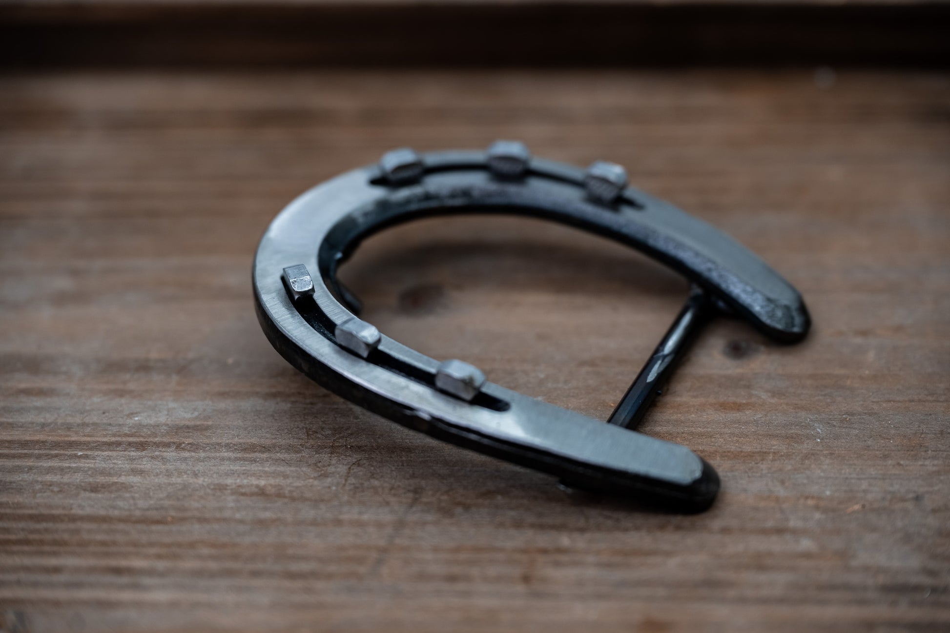 This polished silver shoe with added silver nails for unique and a sleek appearance yet still offers a refined, smaller design ideal for those seeking a subtle yet distinctive accessory. Expertly crafted with a smooth finish, it adds a touch of elegance to any belt while maintaining a compact size for comfortable wear. Perfect for pony enthusiasts or collectors looking for a high-quality, understated buckle.