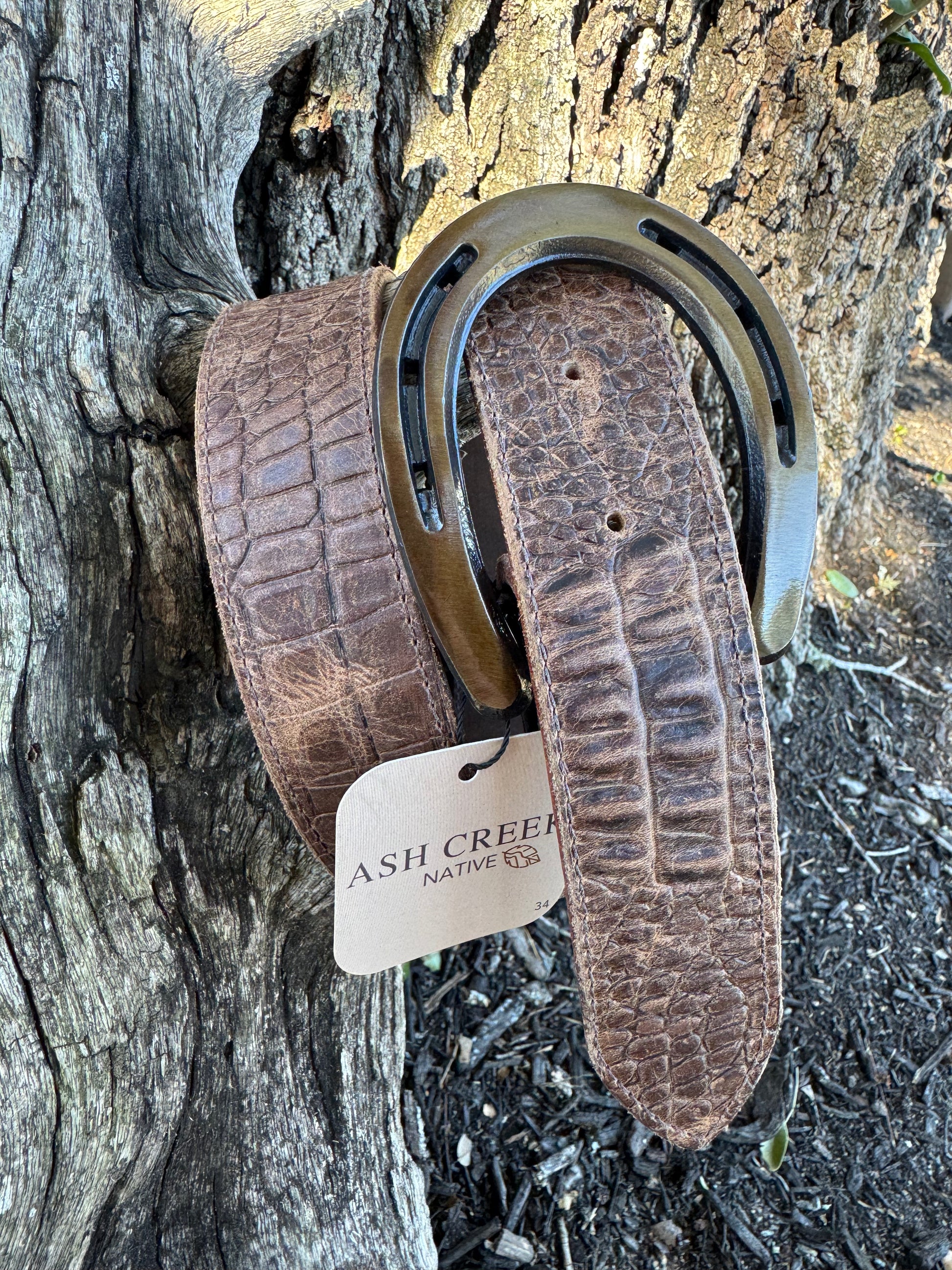 Indulge in luxury with our Sabana Brown Embossed Croc belt. Crafted from supple, rustic finish leather, this matte brown beauty is adorned with an embossed crocodile pattern. Elevate any outfit with this exquisite, must-have accessory.